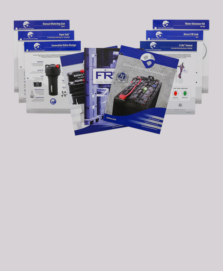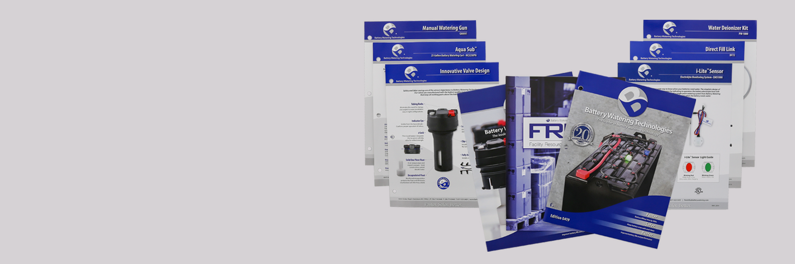 We are pleased to provide the materials you need to run your battery watering operation and maintenance safely and efficiently. Below you will find links to slick sheets, catalogs and brochures to help answer any of your customer’s questions. Our products must be installed and operated in a manner conducive to our warranty. Using the proper water pressure, installing the products properly and using approved filling devices is imperative for safety and efficiency.