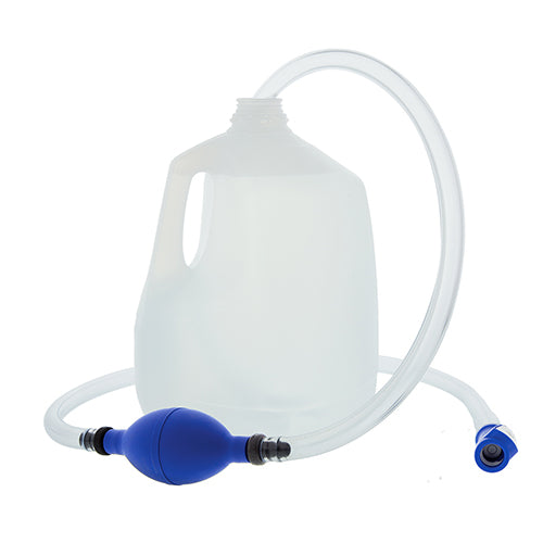 Simply place the end into a jug of distilled water and connect to the battery watering system. You are ready to water!